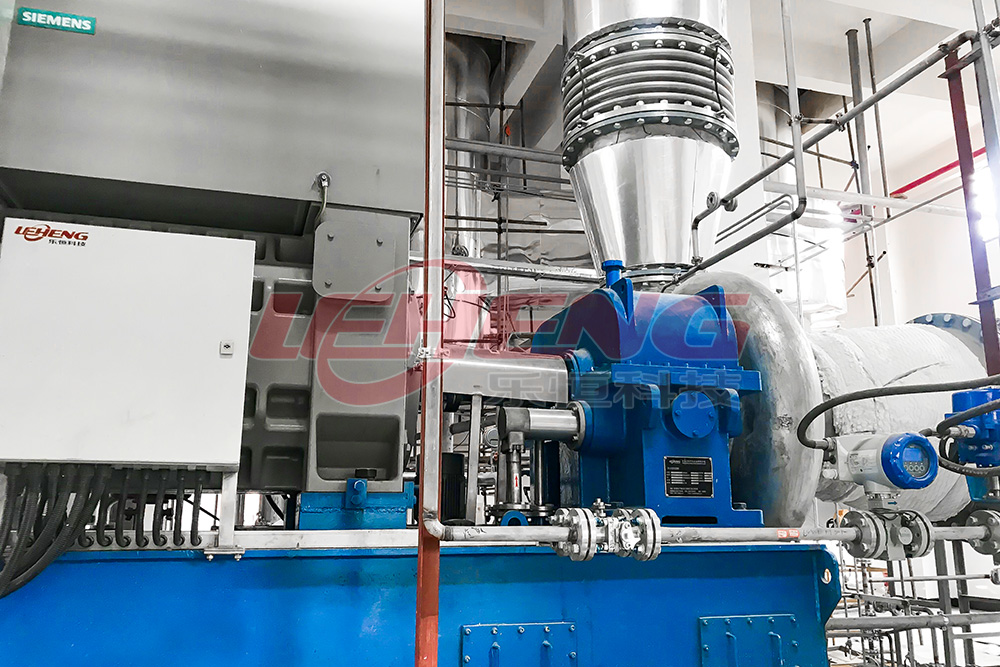 該項目配套的壓縮機為樂恒研發生產的增速箱式蒸汽壓縮機,壓縮機溫升20℃。增速箱式離心式壓縮機由電機與增速齒輪箱配合進行驅動,通過精密的葉輪設計可使壓縮機工作效率可以達到85%以上。