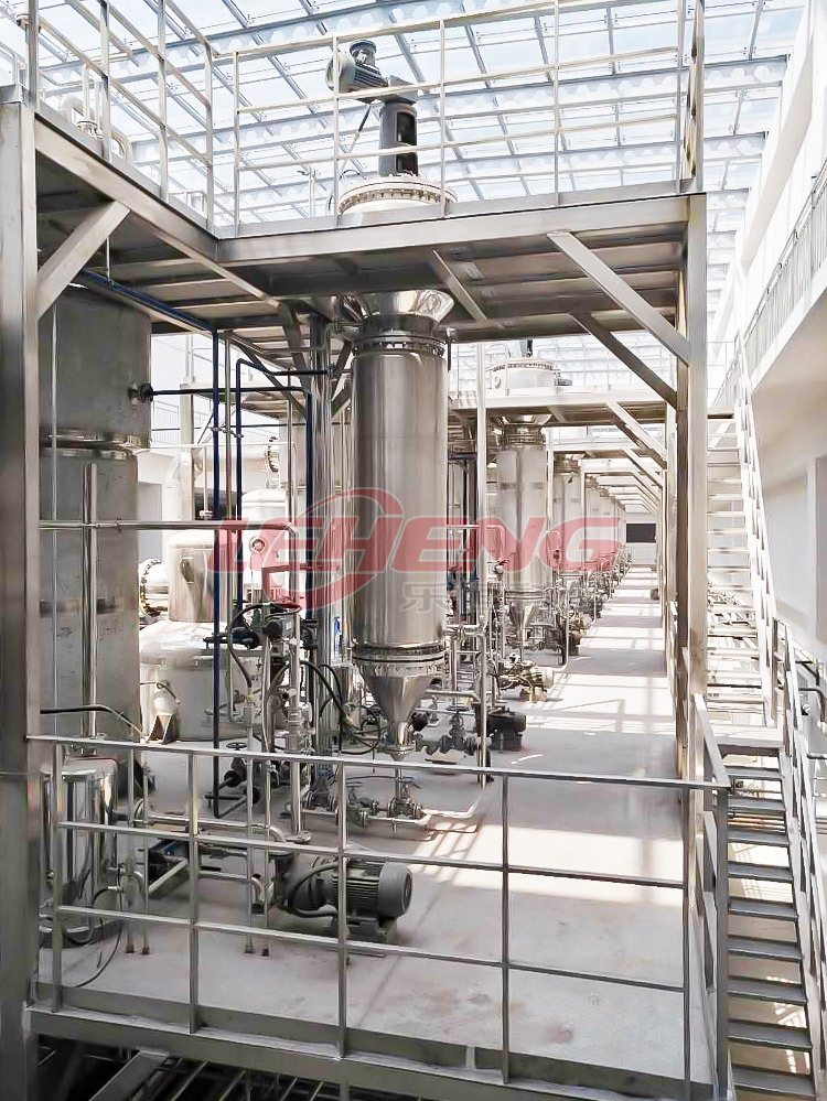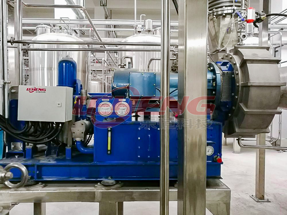 針對該項目的要求,樂恒設計了MVR兩級降膜蒸發+刮板濃縮的解決方案,壓縮機選用樂恒自研的高速直驅蒸汽壓縮機,在滿足收膏要求的前提下盡量降低能耗。