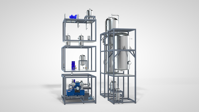 樂恒新研發(fā)的MVR蒸發(fā)系統(tǒng)采用整體預(yù)制的成套撬裝模塊化設(shè)計(jì),撬裝式設(shè)備的生產(chǎn)、組裝都在工廠內(nèi)完成,現(xiàn)場安裝工作量少,只需完成接口管道及外部電氣的連接就可以工作;設(shè)備緊湊,比起傳統(tǒng)的安裝方式占地面積小,便于安裝,便于運(yùn)輸遷移。